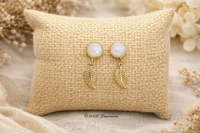 Élégantes et intemporelles, ces boucles d’oreilles associent la délicatesse de la pierre de lune naturelle (8 mm) à l’éclat raffiné de l’acier inoxydable doré à l’or fin. Ornée d’un pendentif feuille , chaque pièce incarne la féminité, l’harmonie et la connexion à la nature.