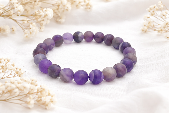 Bracelet en améthyste mate de 8 mm, monté sur élastique doublé