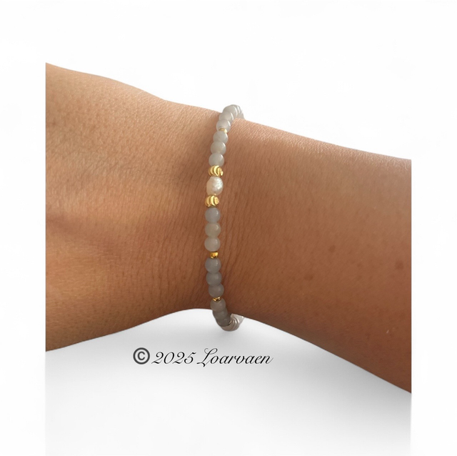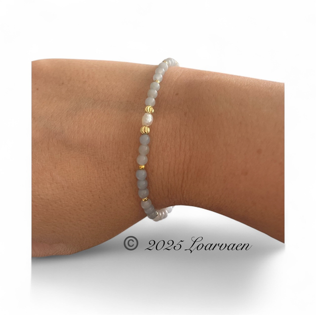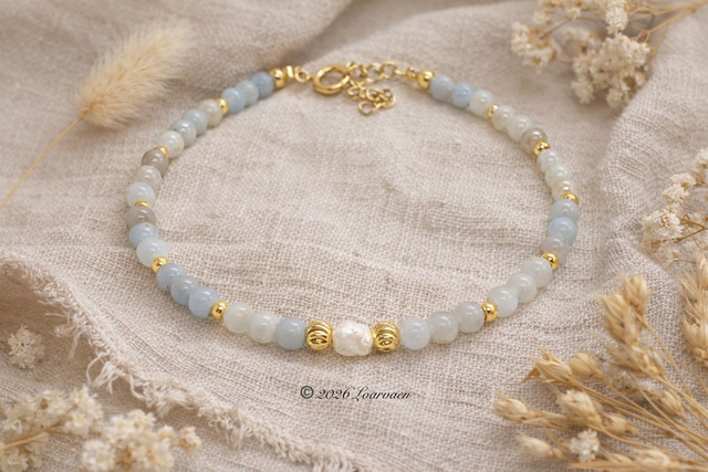 Bracelet fin et élégant en angélite bleue, sublimé par des intercalaires plaqués or 24K.