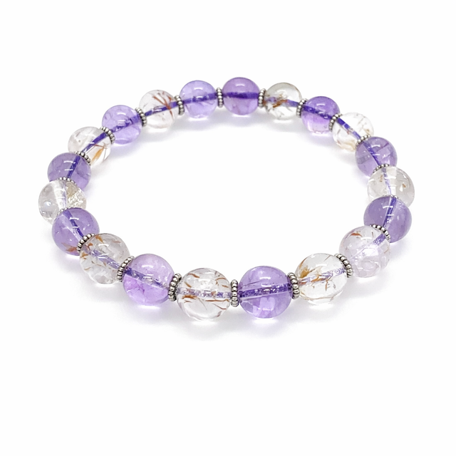 Bracelet en cacoxénite de 8 mm, pierre aux nuances fascinantes réputée pour favoriser l’élévation spirituelle et l’harmonie intérieure. Chaque pierre est sublimée par de délicats intercalaires en acier inoxydable, apportant une touche d’élégance et de raffinement.