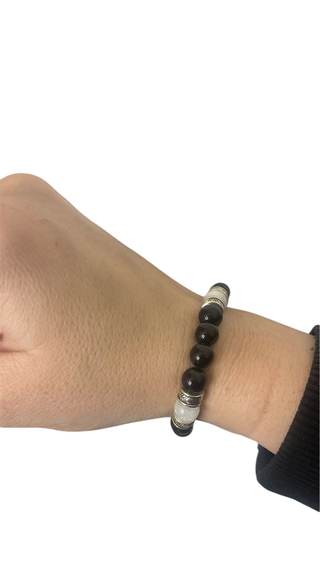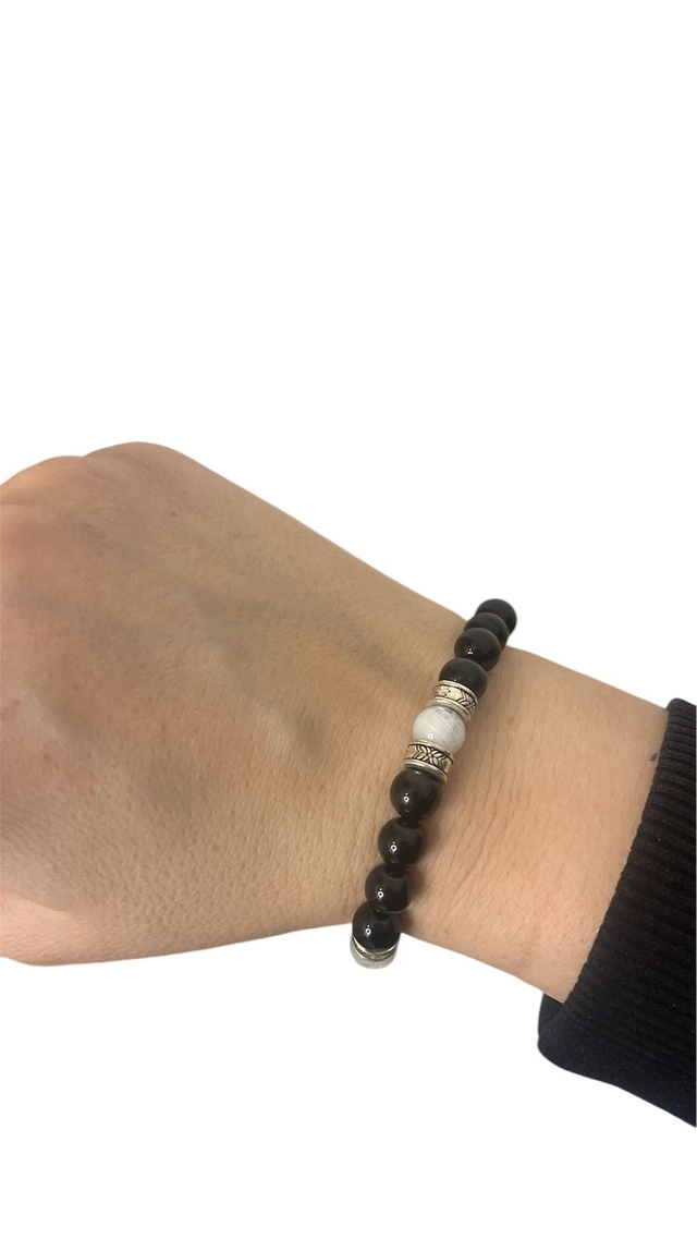Bracelet « Epona » Onyx noir et pierre de Lune 8 mm