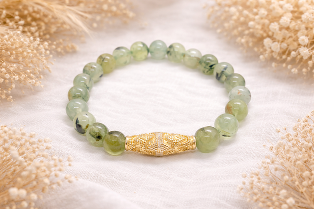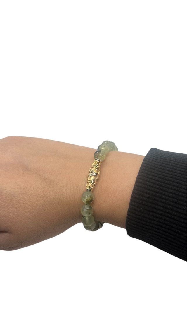 Ce bracelet en préhnite naturelle est une invitation à la paix intérieure et à la bienveillance.