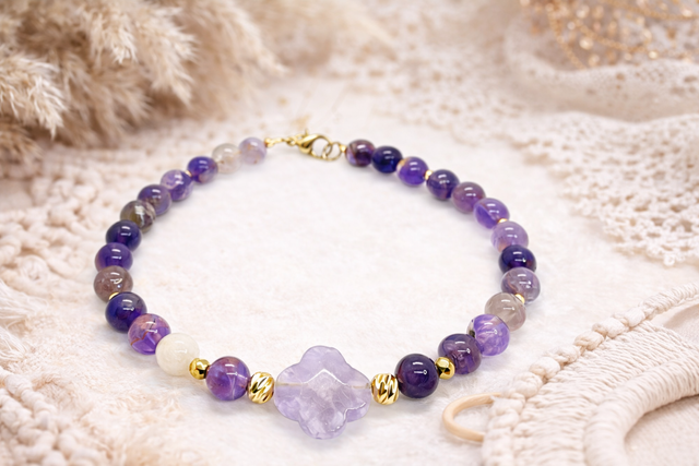 Bracelet « trèfle » Améthyste fantôme 6 mm