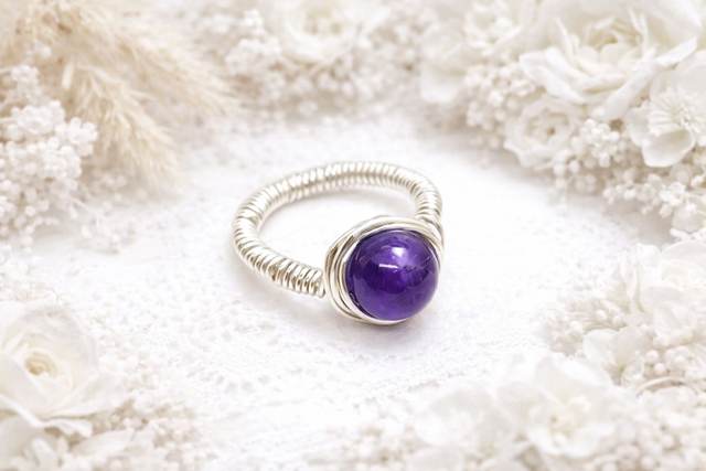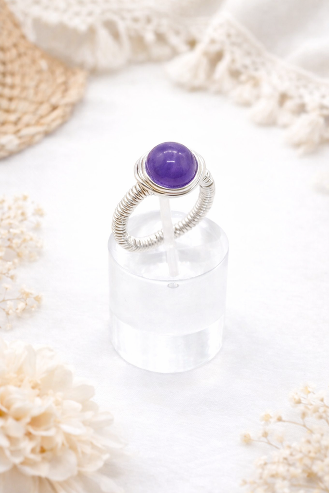 Bague améthyste 8 mm en acier inoxydable – faite main